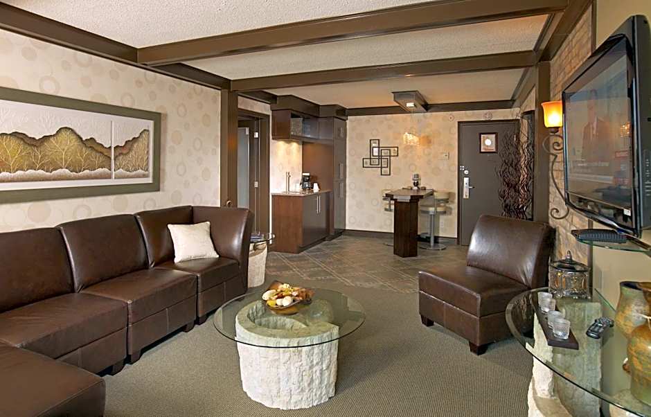 This suite features a flat-screen TV, iPod dock and sofa. A refrigerator and coffee maker are also included.